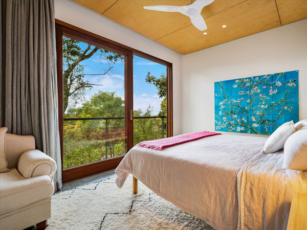 Accomodation is two palatial king bedrooms with floor to ceiling views to the coast and forest surrounds. Organic latex matresses and quality linen ensure a good nights rest. The master features an electric bed so you can enjoy that early cuppa in bed or fine tune your sleeping position.